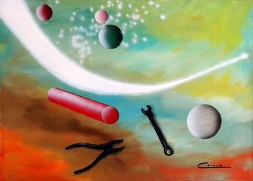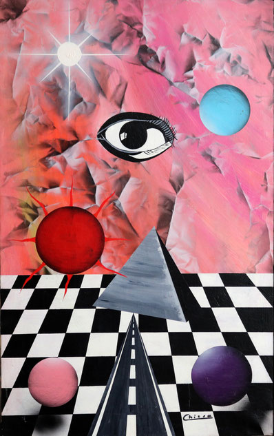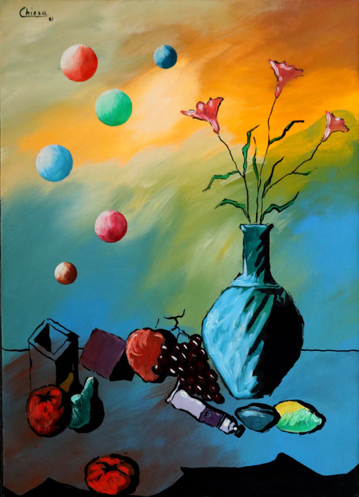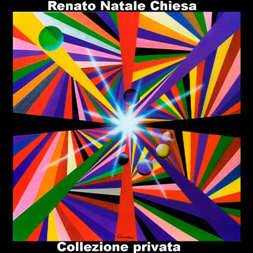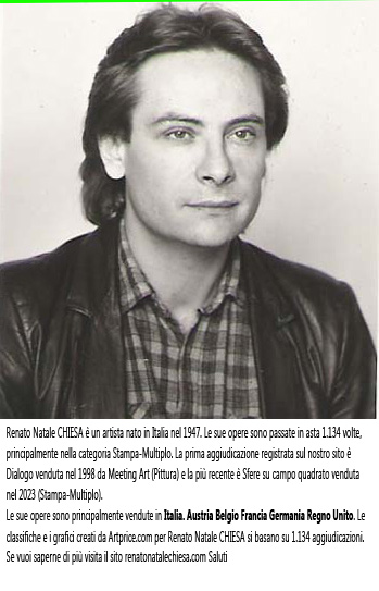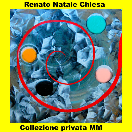 La sua carriera cinquantennale è costellata di innumerevoli riconoscimenti a livello internazionale. Le sue opere battute nelle più prestigiose case d’asta sono, finora, oltre 360. Renato Chiesa è un personaggio che vive di luce propria; non ha debiti verso figure storiche di riferimento, né esistono filoni artistici che possano chiaramente classificarlo. Figurativo o astratto per lui possono essere pure etichette o convenzioni. Una caratteristica che colpisce di Chiesa è proprio la sua esuberanza, il dinamismo che sprigionano le sue tele a livello plastico e spaziale. Un turbinio di variazioni cromatiche, come un susseguirsi di onde fantasmagoriche, che fa da sfondo ai temi che campeggiano in modo quasi irriverente. La sfera è forse il leit-motiv, quasi un marchio di riconoscimento per questo artista. E in effetti di sfere, colte in tutte le più disparate prospettive, abbondano le sue opere. Con un rilievo, nel vero senso della parola, del tutto particolare. E’ come un consumato giocatore di biliardo che ad ogni tentativo, attraverso impensabili traiettorie, partendo anche dai punti più scomodi riesca a mandare sempre in buca. Se non è uno sfondo straripante di vitalità a sostenere, ovvero a mantenere meravigliosamente a galla, la sfera, è la sua precisa, assolutamente nitida ombra. Ed è proprio in un gioco d’ombre in cui si ripiega l’energia dell’artista quando, per una mossa un po’ sorniona, si rifiuta di uscire allo scoperto. A Renato Chiesa, dicevamo, piace sorprendere, non per partito preso, ma per una intuizione che sa andare oltre le aspettative dell’osservatore. La serie dei ritratti di donne e uomini famosi, così come quello dei pacchetti di sigarette (un divertissement autobiografico), è il corrispettivo, a livello figurativo, delle sue rappresentazioni sferico-astratte. Ma anche in questo “doppio salto mortale” l’artista, riesce ad atterrare con scioltezza come un perfetto equilibrista. Ed è l’ennesima dimostrazione della propria onesta intellettuale: uno spirito che riesce ad imporsi, riemergendo dal caos tempestoso delle proprie emozioni e mantenendo la propria rotta lungo una direttrice destinata a durare.